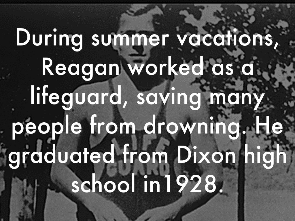 During summer vacations, Reagan worked as a lifeguard, saving many people from drowning. He graduated from Dixon high school in1928.
