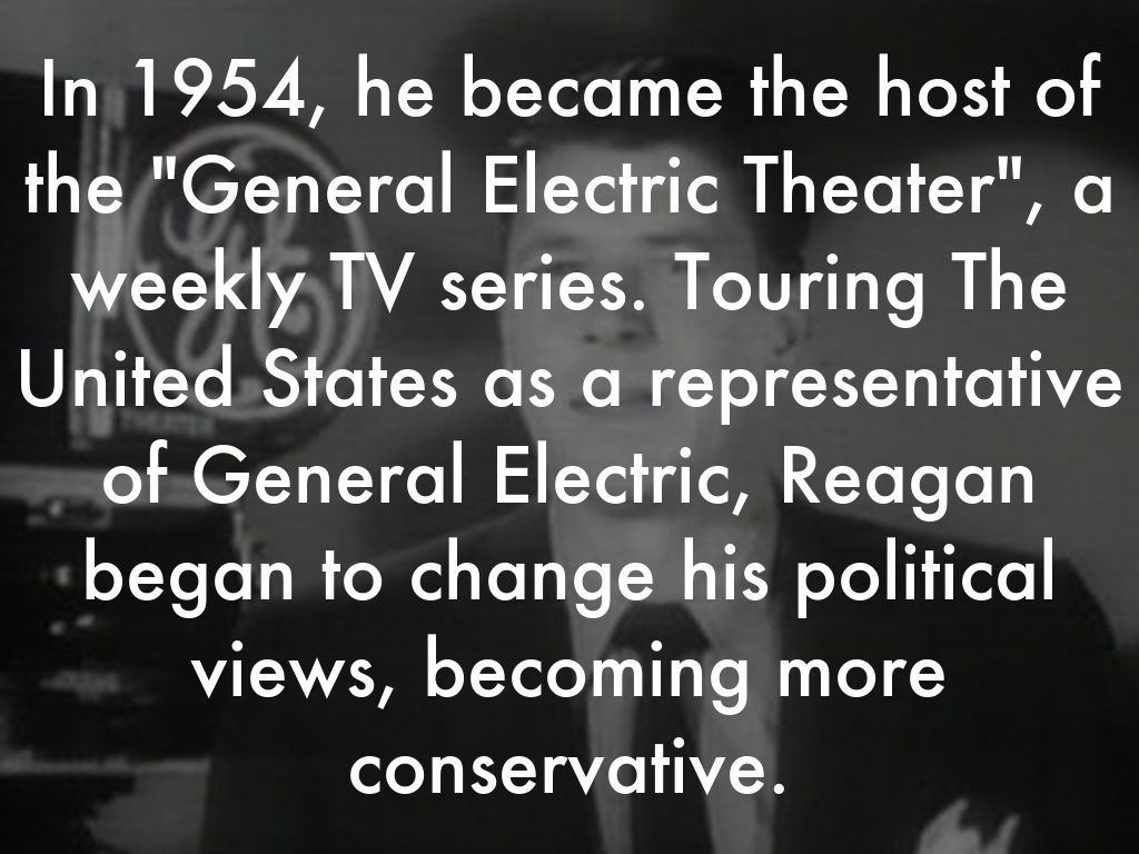 In 1954, he became the host of the "General Electric Theater", a weekly TV series. Touring The United States as a representative of General Electric, Reagan began to change his political views, becoming more conservative.