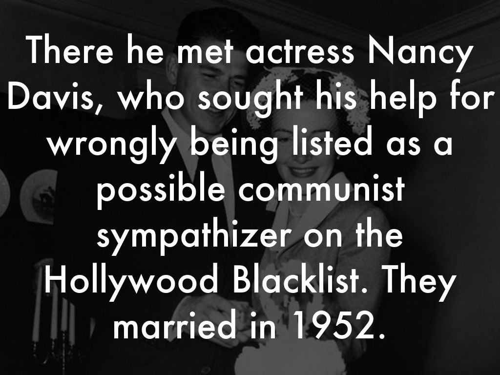 There he met actress Nancy Davis, who sought his help for wrongly being listed as a possible communist sympathizer on the Hollywood Blacklist. They married in 1952.