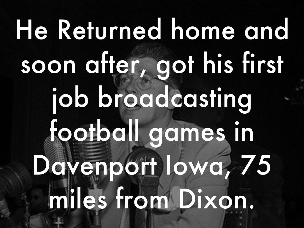 He Returned home and soon after, got his first job broadcasting football games in Davenport Iowa, 75 miles from Dixon.