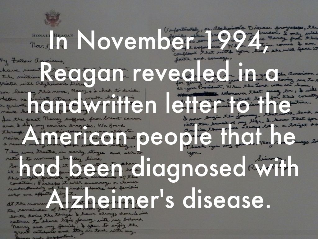 In November 1994, Reagan revealed in a handwritten letter to the American people that he had been diagnosed with Alzheimer's disease.