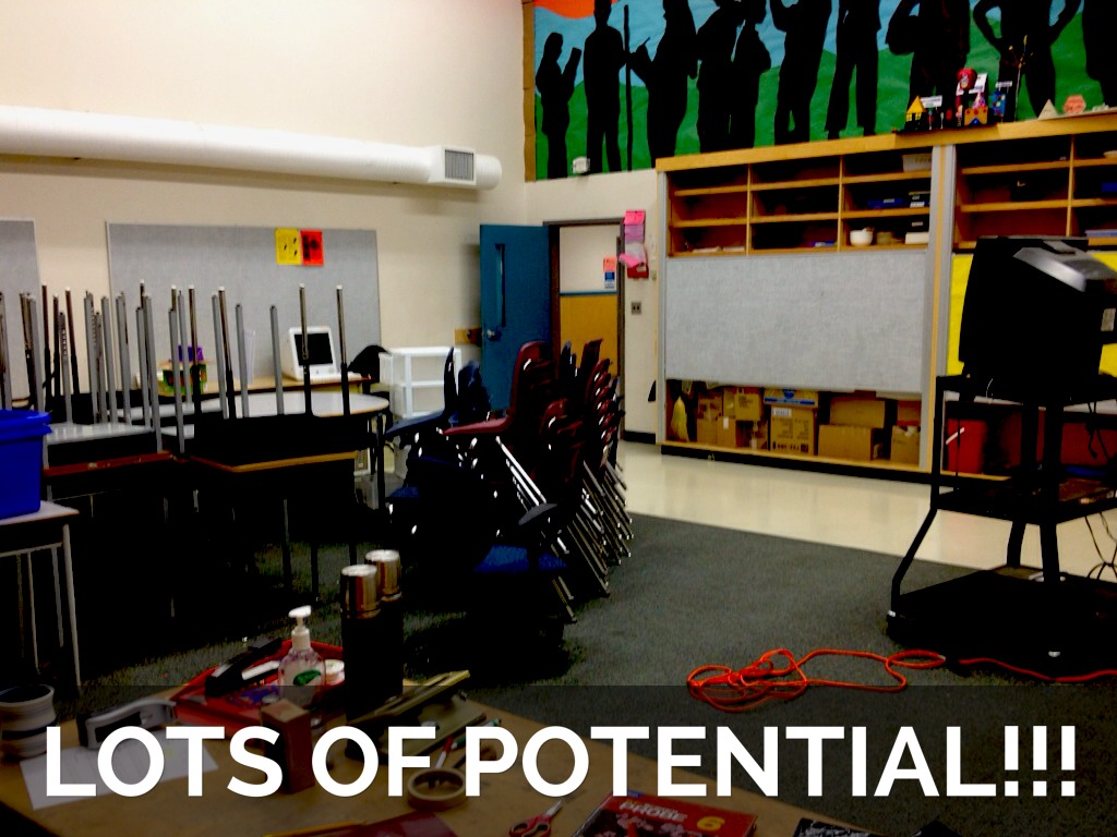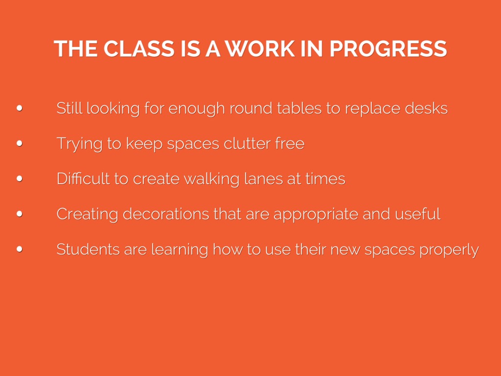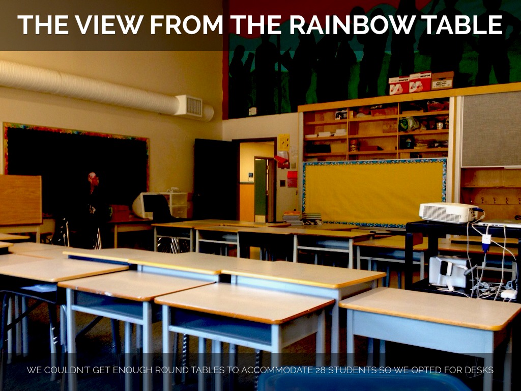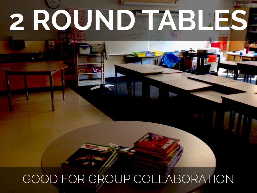 WE COULDN'T GET ENOUGH ROUND TABLES TO ACCOMMODATE 28 STUDENTS SO WE OPTED FOR DESKS