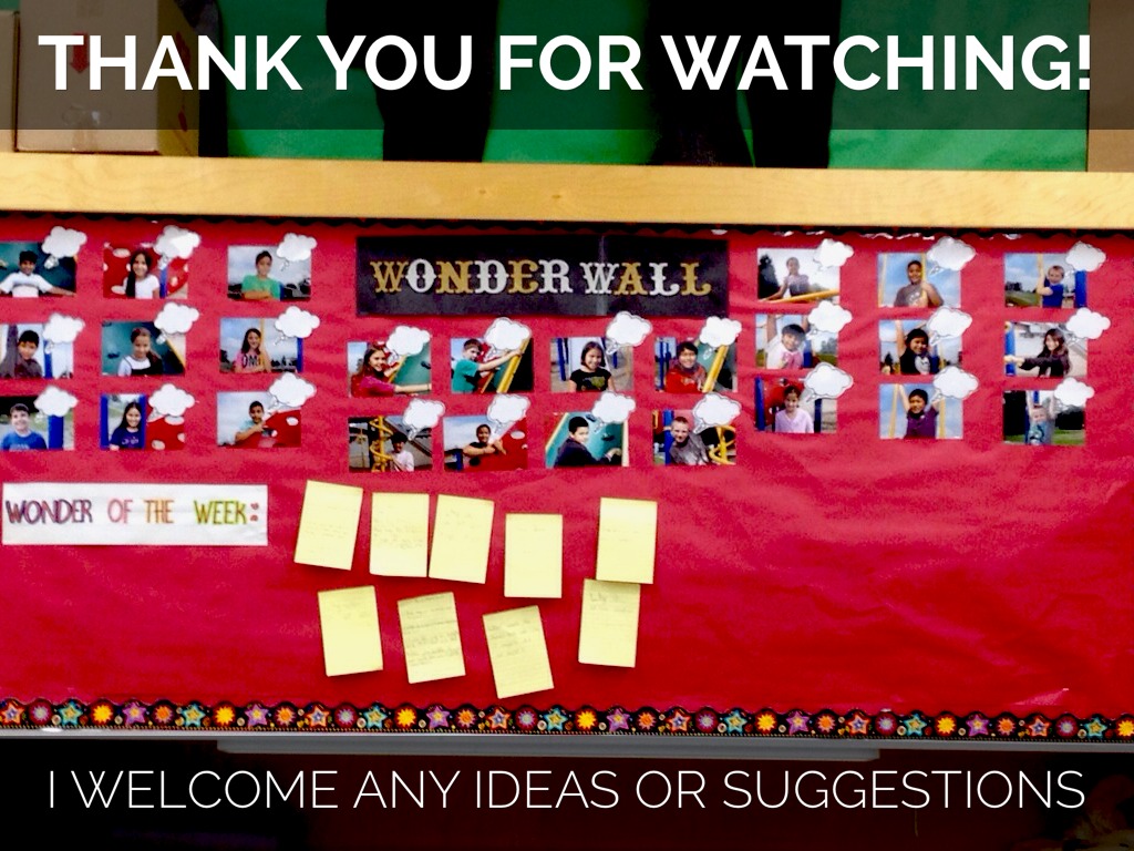 I WELCOME ANY IDEAS OR SUGGESTIONS