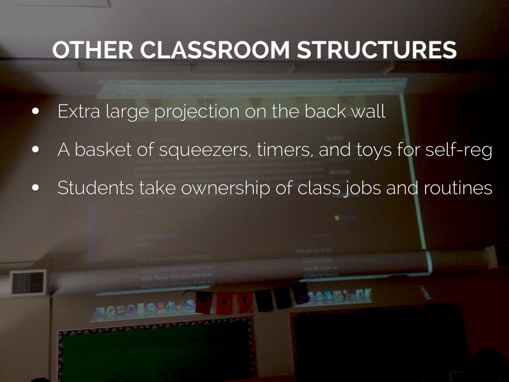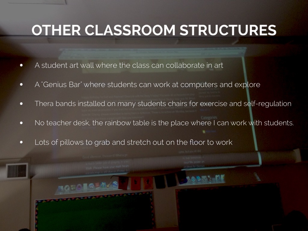 • Thera bands installed on many students chairs for exercise and self-regulation