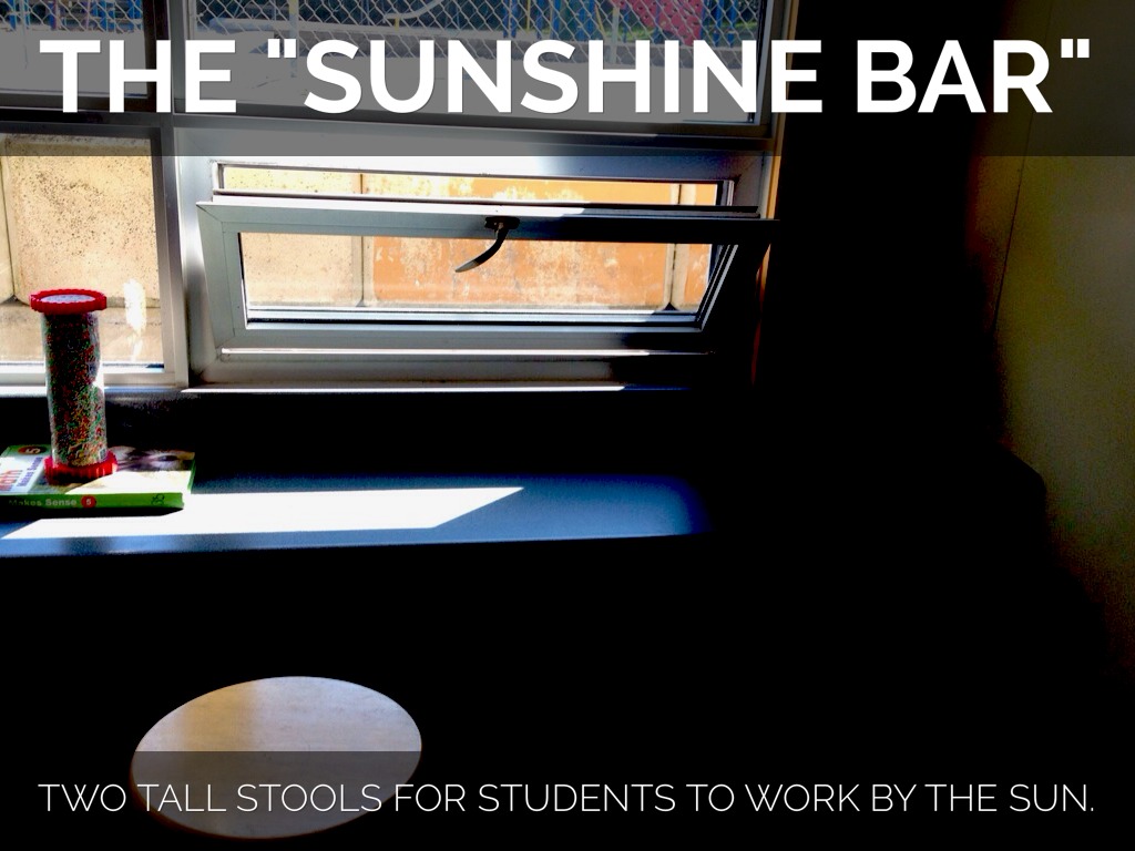 TWO TALL STOOLS FOR STUDENTS TO WORK BY THE SUN.