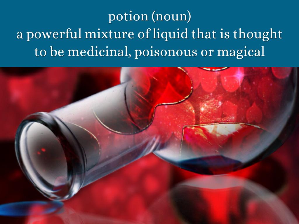 a powerful mixture of liquid that is thought to be medicinal, poisonous or magical