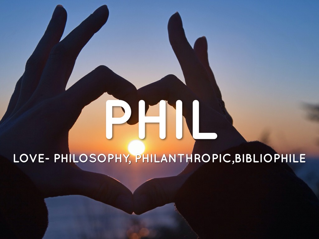 LOVE- PHILOSOPHY, PHILANTHROPIC,BIBLIOPHILE