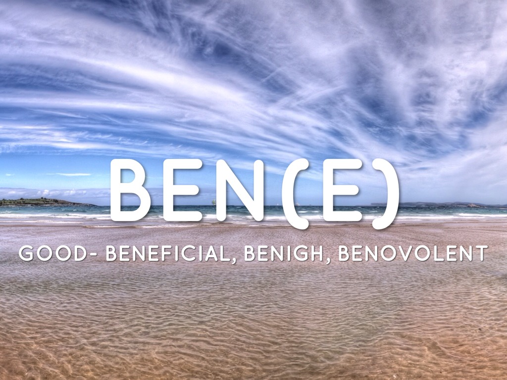GOOD- BENEFICIAL, BENIGH, BENOVOLENT