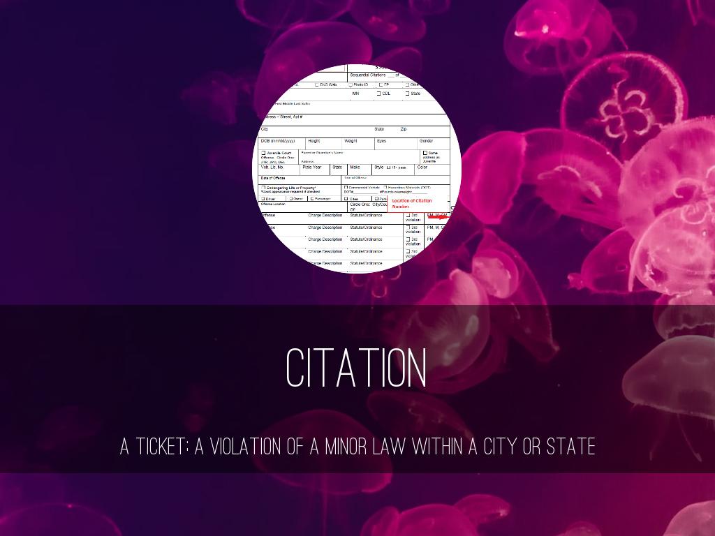 A TICKET; A VIOLATION OF A MINOR LAW WITHIN A CITY OR STATE
