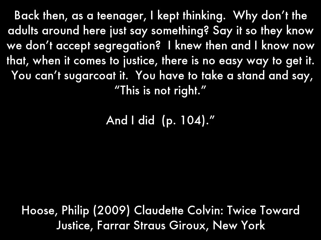 Hoose, Philip (2009) Claudette Colvin: Twice Toward Justice, Farrar Straus Giroux, New York