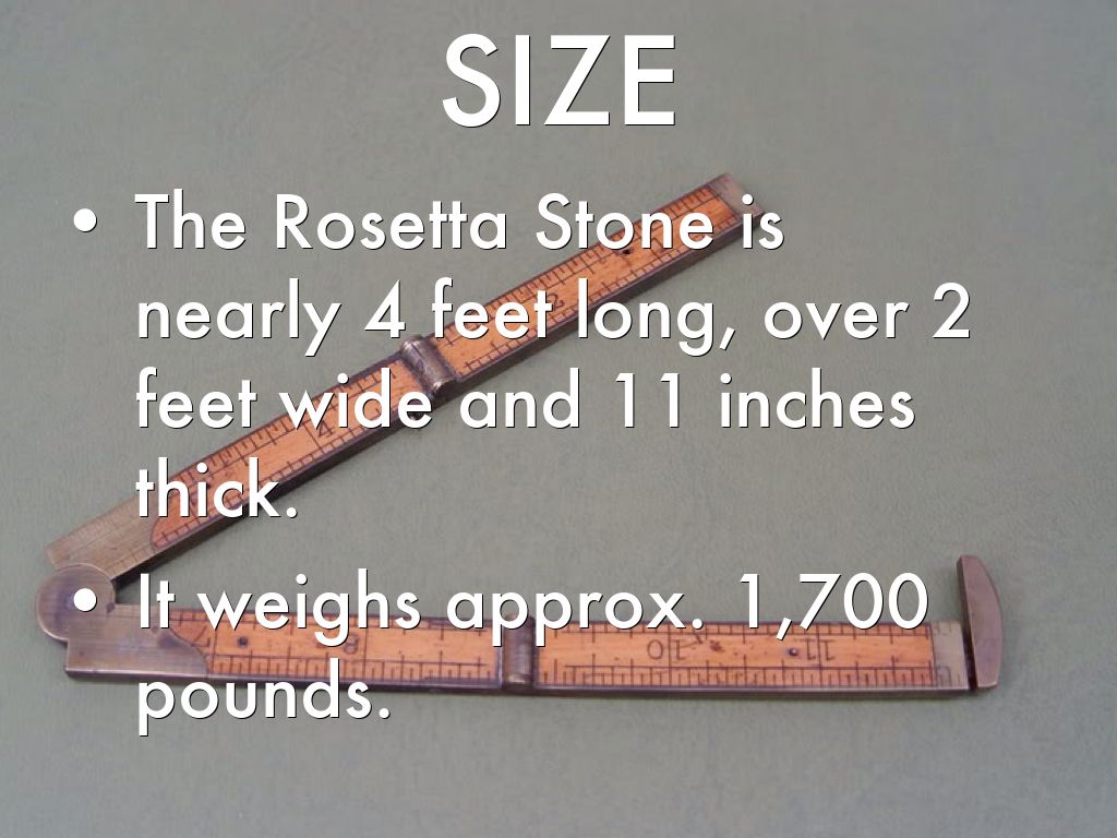 The Rosetta Stone is nearly 4 feet long, over 2 feet wide and 11 inches thick.