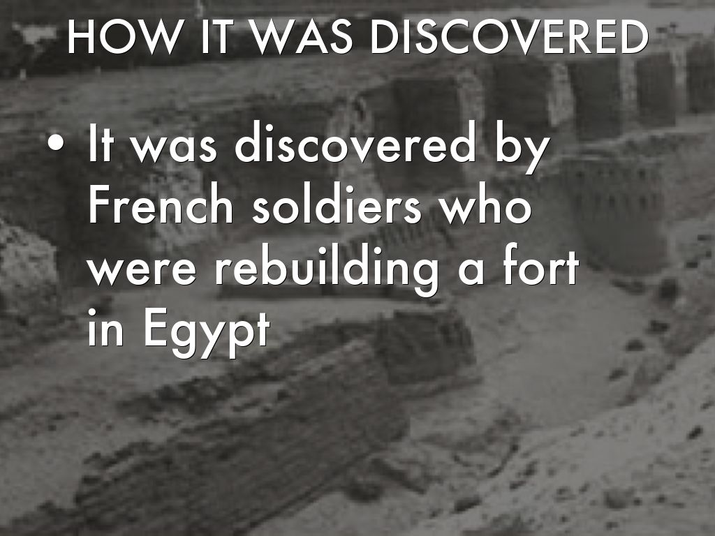 It was discovered by French soldiers who were rebuilding a fort in Egypt