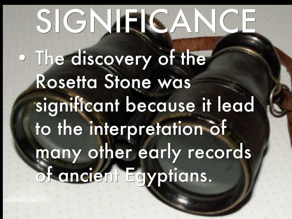 The discovery of the Rosetta Stone was significant because it lead to the interpretation of many other early records of ancient Egyptians.