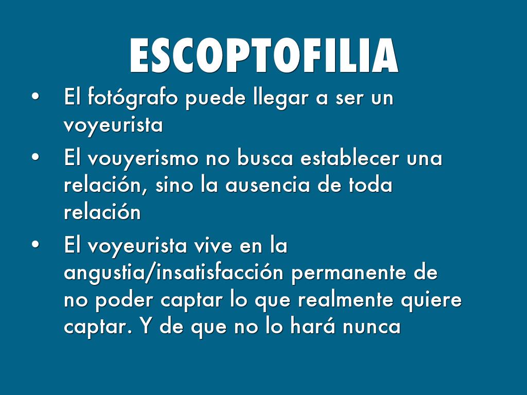 El voyeurista vive en la angustia/insatisfacción permanente de no poder captar lo que realmente quiere captar. Y de que no lo hará nunca
