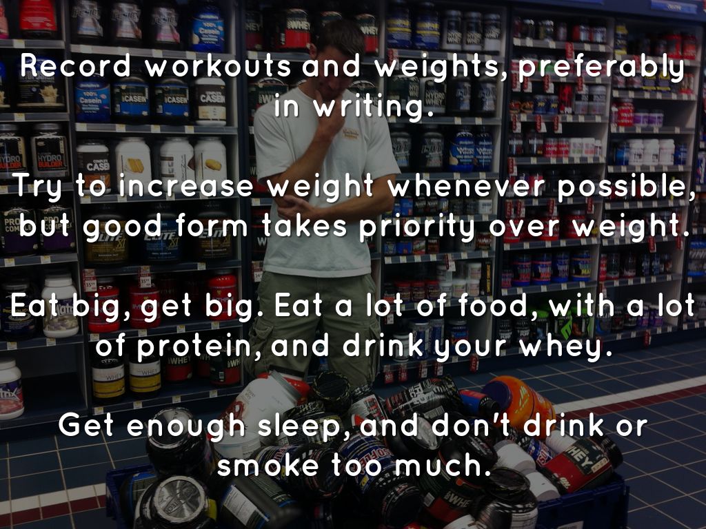 Record workouts and weights, preferably in writing.