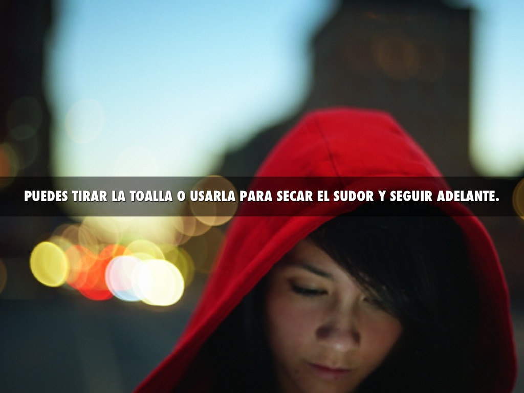 PUEDES TIRAR LA TOALLA O USARLA PARA SECAR EL SUDOR Y SEGUIR ADELANTE.