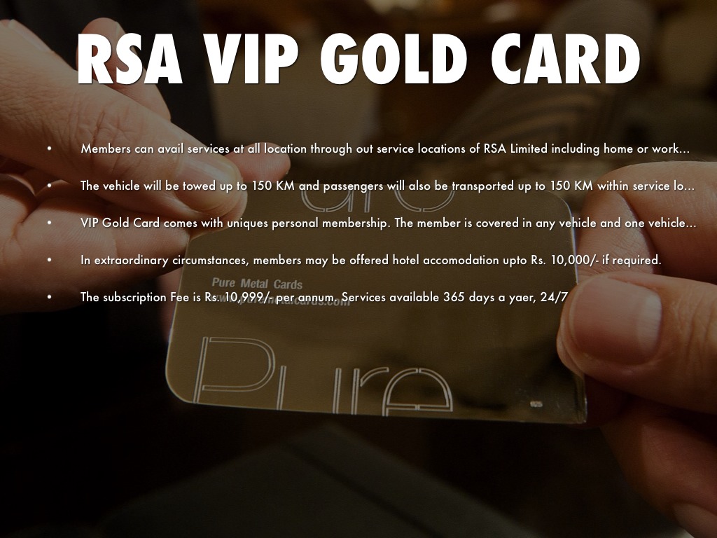 VIP Gold Card comes with uniques personal membership. The member is covered in any vehicle and one vehicle registration is also covered under same membership.