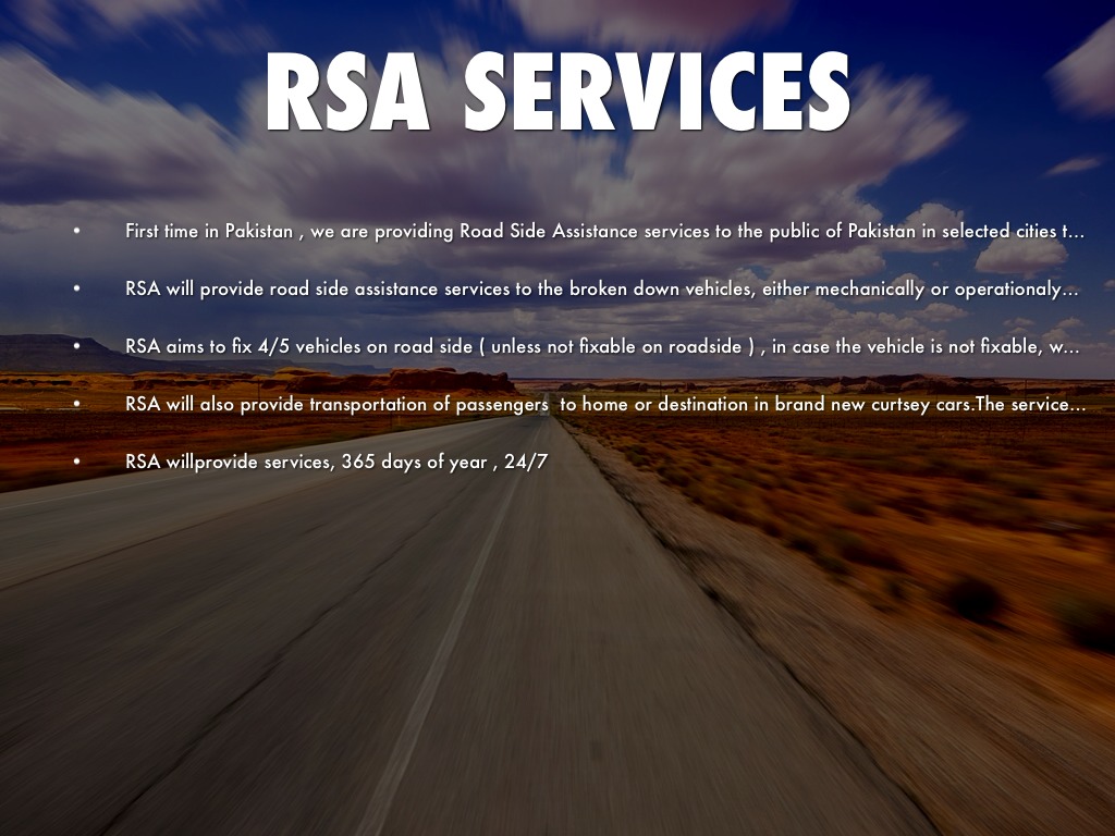 First time in Pakistan , we are providing Road Side Assistance services to the public of Pakistan in selected cities throughout Pakistan