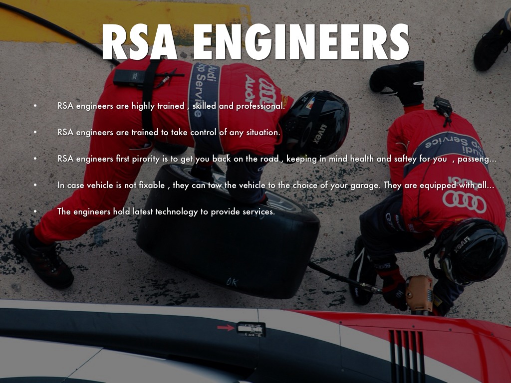 RSA will provide road side assistance services to the broken down vehicles, either mechanically or operationaly anywhere within the service locations.