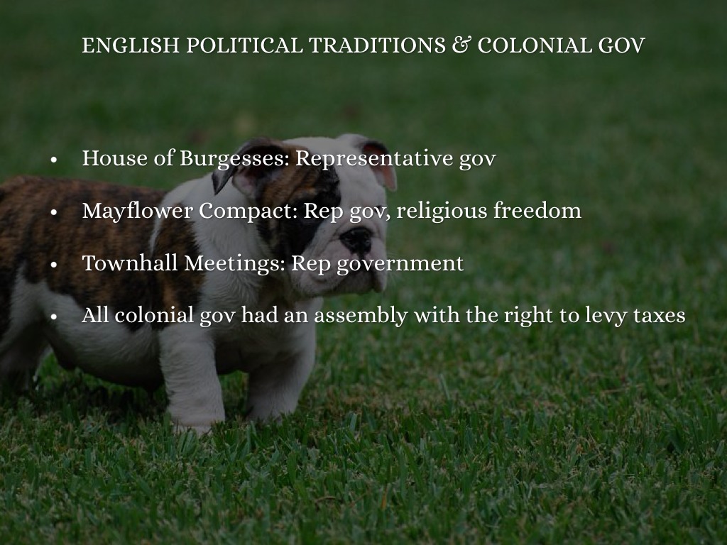 ENGLISH POLITICAL TRADITIONS & COLONIAL GOV