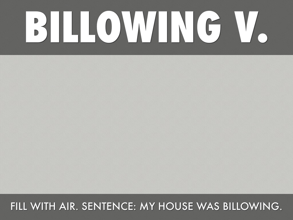 FILL WITH AIR. SENTENCE: MY HOUSE WAS BILLOWING.
