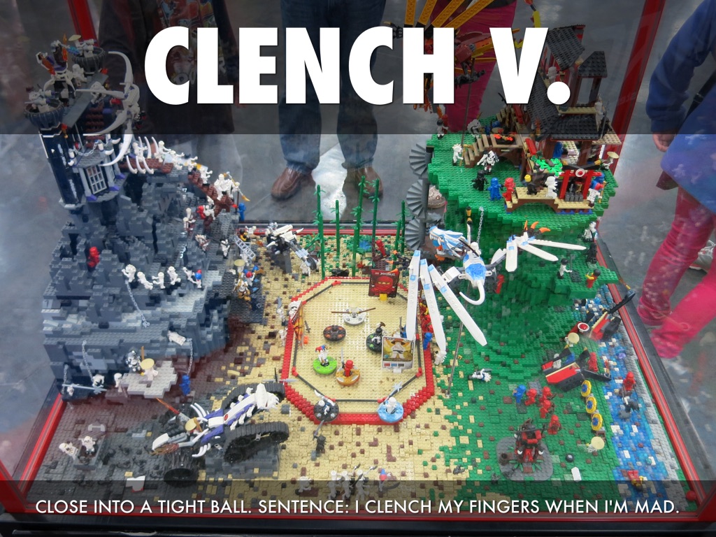 CLOSE INTO A TIGHT BALL. SENTENCE: I CLENCH MY FINGERS WHEN I'M MAD.