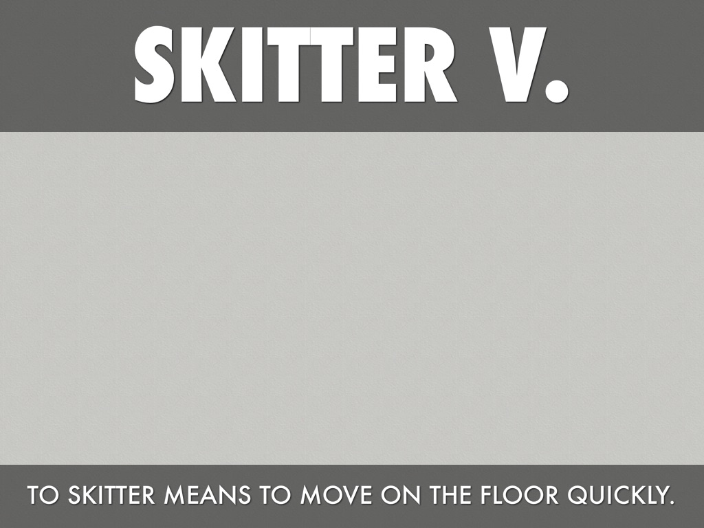 TO SKITTER MEANS TO MOVE ON THE FLOOR QUICKLY.