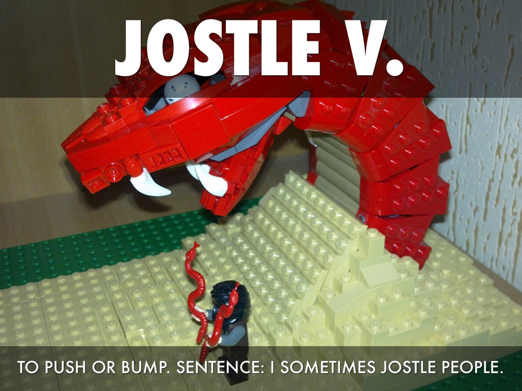 TO PUSH OR BUMP. SENTENCE: I SOMETIMES JOSTLE PEOPLE.