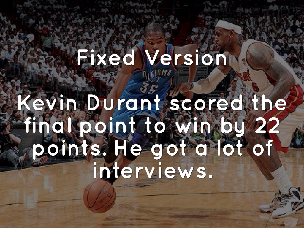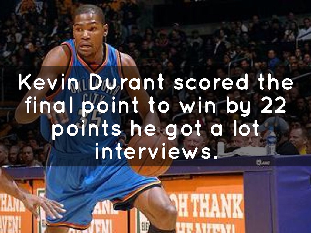 Kevin Durant scored the final point to win by 22 points he got a lot interviews.