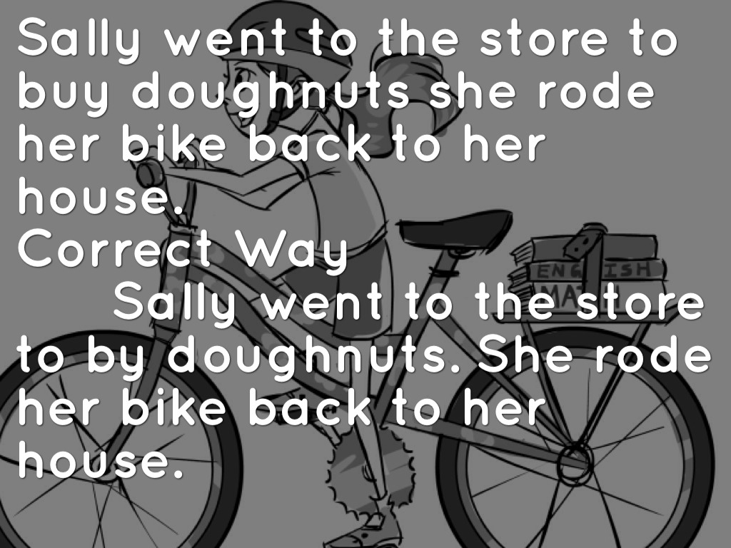 Sally went to the store to by doughnuts. She rode her bike back to her house.