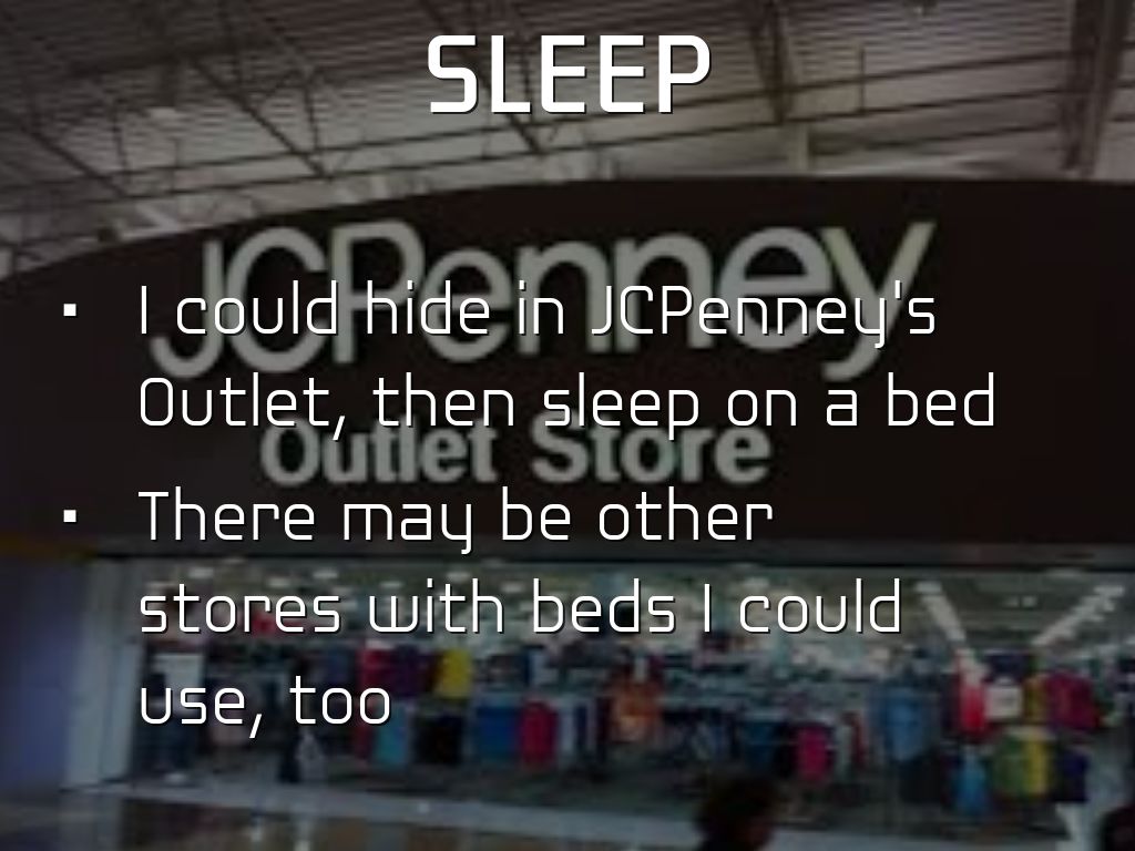 I could hide in JCPenney's Outlet, then sleep on a bed