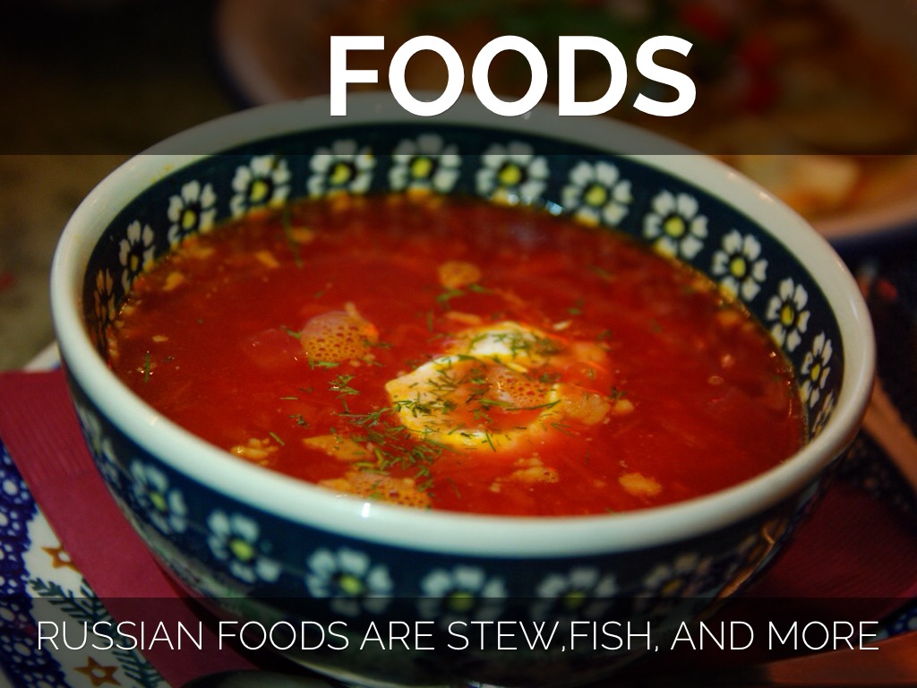 RUSSIAN FOODS ARE STEW,FISH, AND MORE