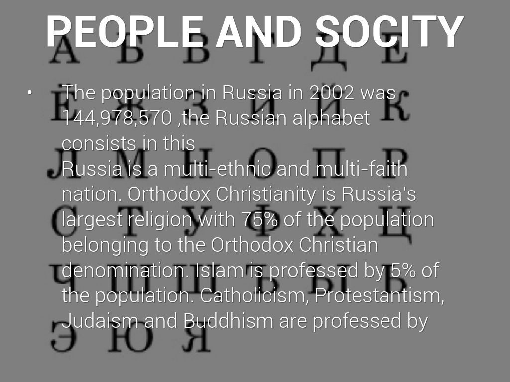 The population in Russia in 2002 was 144,978,570 ,the Russian alphabet consists in this
