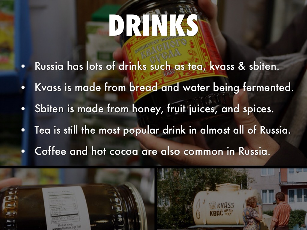 Russia has lots of drinks such as tea, kvass & sbiten.