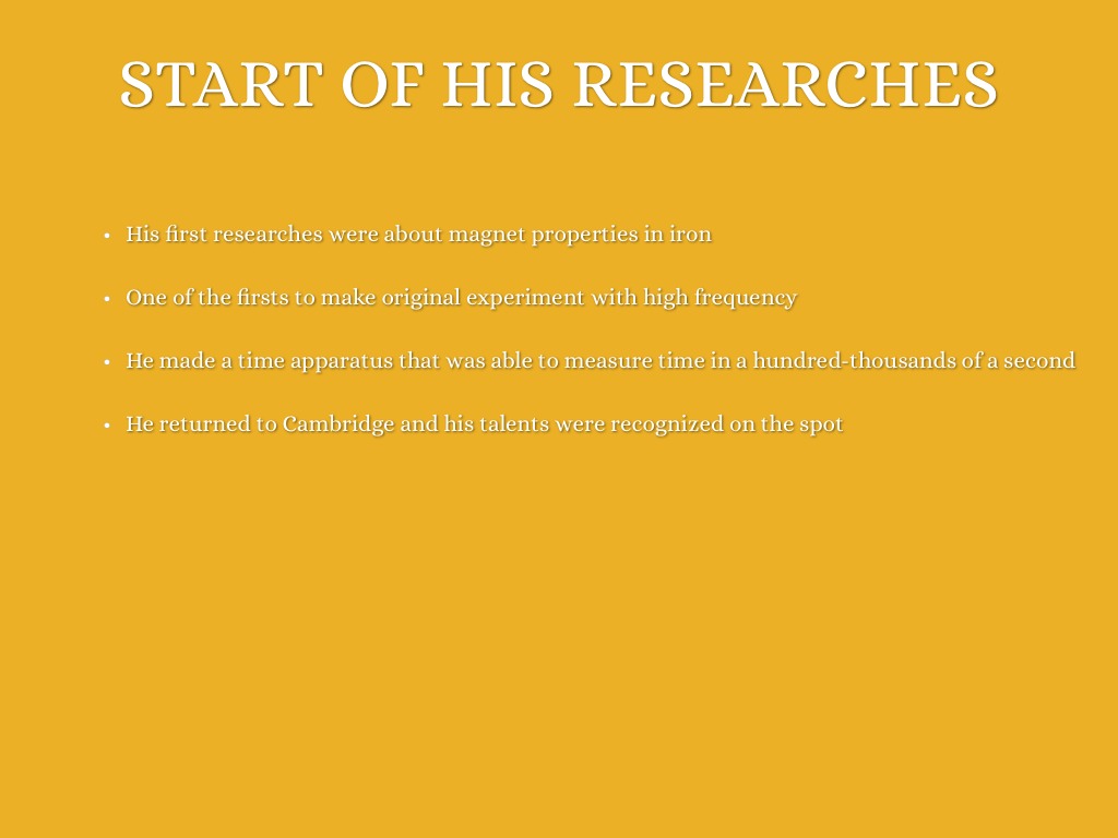 START OF HIS RESEARCHES