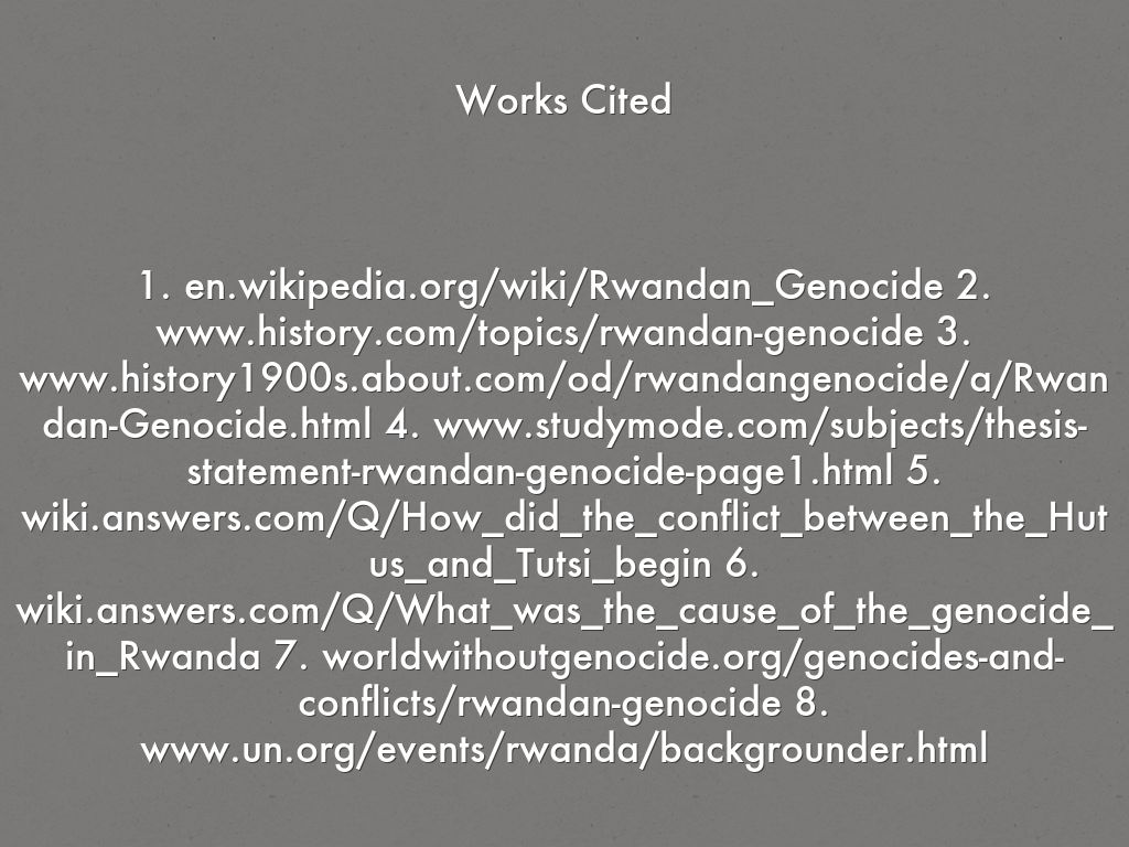 The Rwandan Genocide were massive killings in 1994 of Tutsis.Tutsi population is the Rwandan Genocides target, because the Hutus hated them. After a plane crash, the tutsi were being executed along with Hutu leaders, and they need help from not being killed.