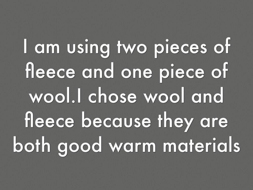 I am using two pieces of fleece and one piece of wool.I chose wool and fleece because they are both good warm materials