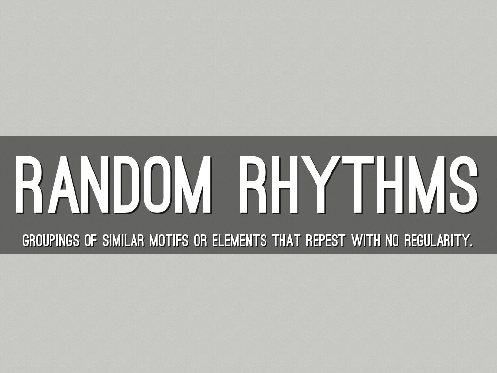 ELEMENTS REPEATED, ALTERNATED, OR ARRANGED, THE SPACE BETWEEN OR HOW THEY OVERLAP CREATES RHYTHM.