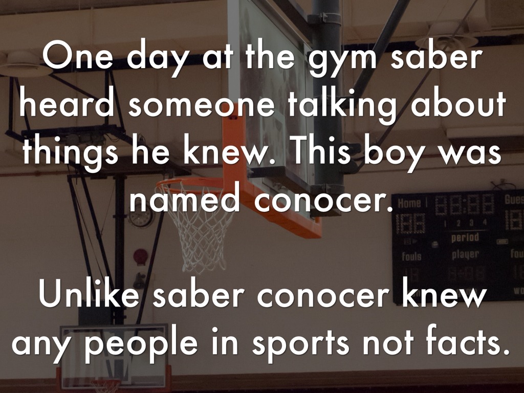 One day at the gym saber heard someone talking about things he knew. This boy was named conocer.