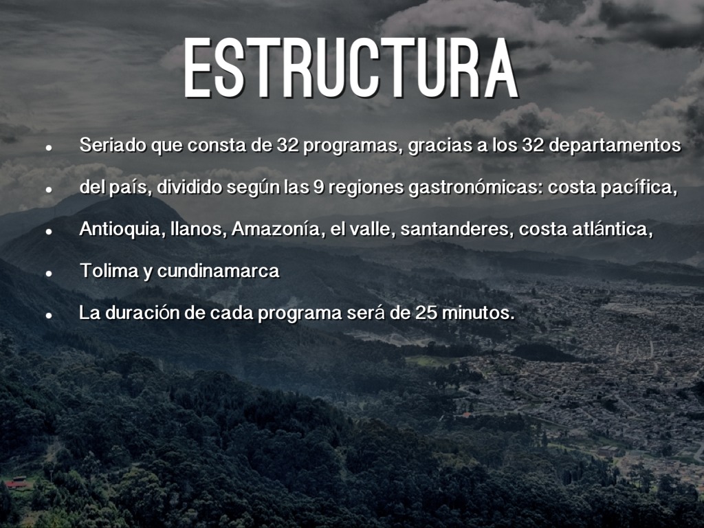 SERIADO DE TELEVISIÓN SOBRE LA BÚSQUEDA DE SABORES COLOMBIANOS