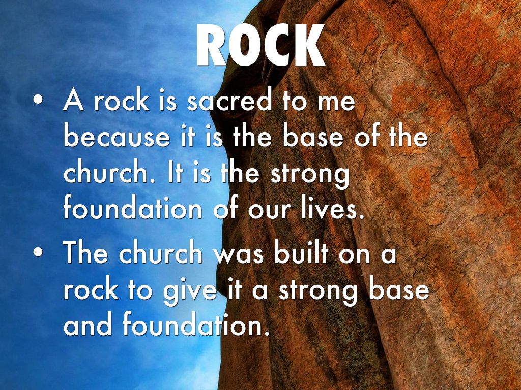 A rock is sacred to me because it is the base of the church. It is the strong foundation of our lives.