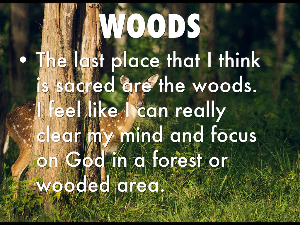 The last place that I think is sacred are the woods. I feel like I can really clear my mind and focus on God in a forest or wooded area.