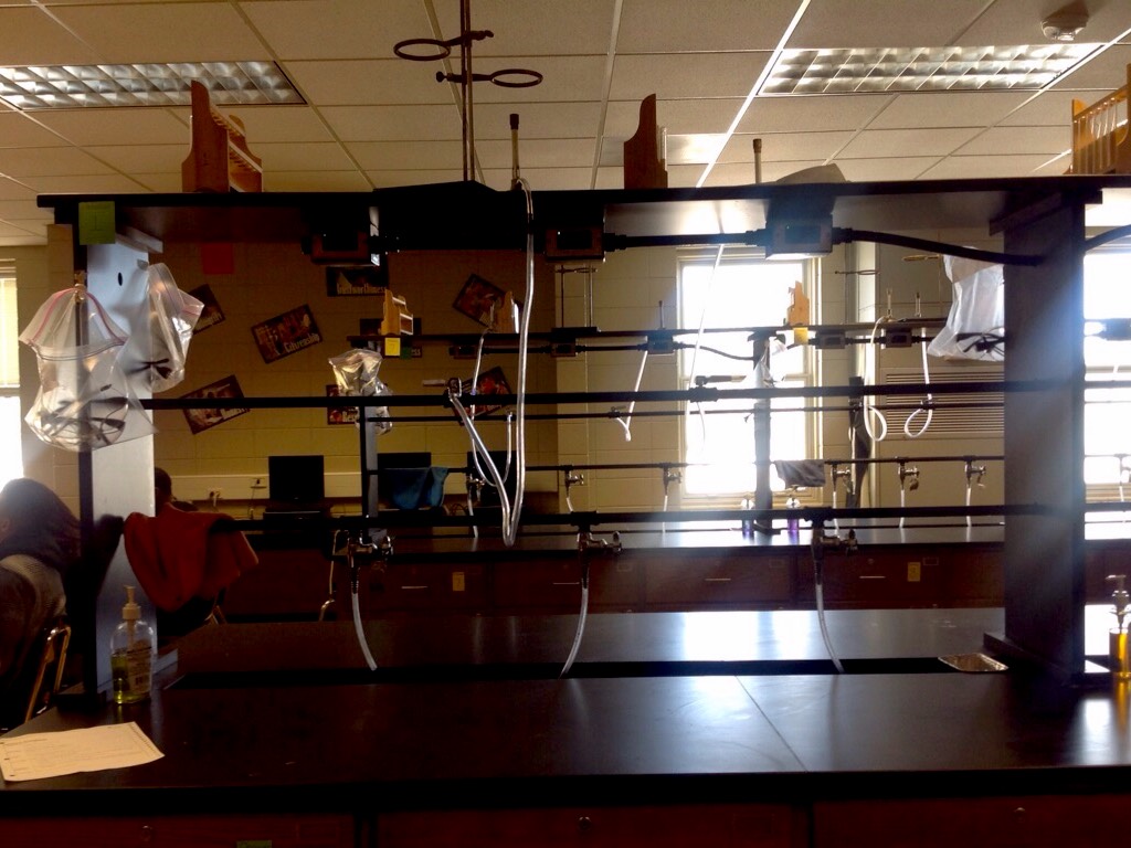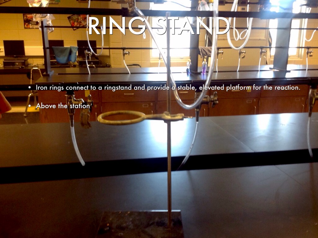 Iron rings connect to a ringstand and provide a stable, elevated platform for the reaction.
