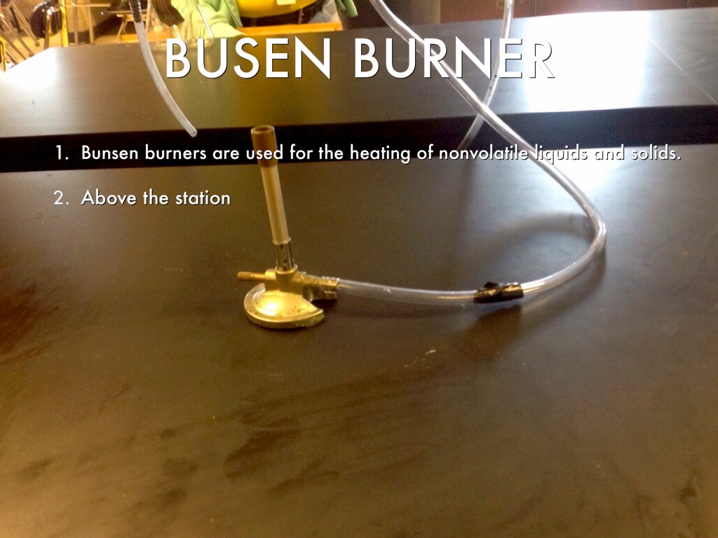 Bunsen burners are used for the heating of nonvolatile liquids and solids.