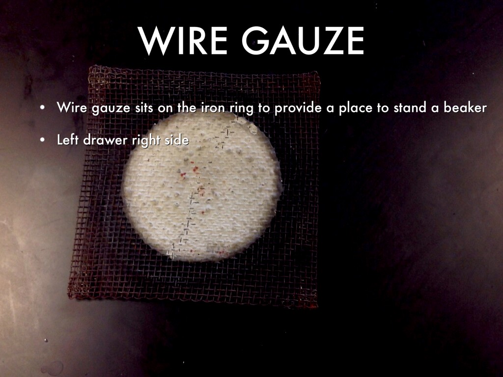 Wire gauze sits on the iron ring to provide a place to stand a beaker