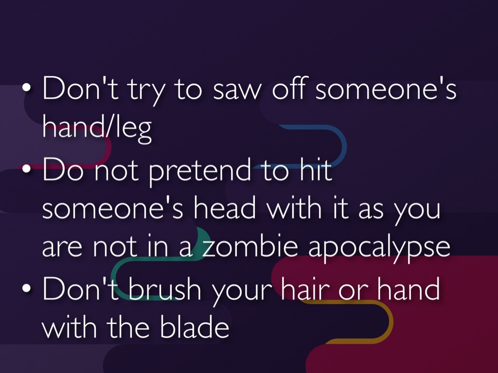Do not pretend to hit someone's head with it as you are not in a zombie apocalypse