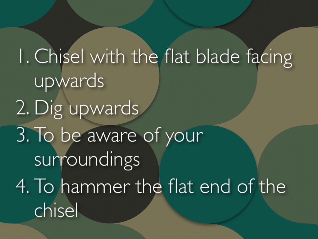Don't stab the ground or peeps with the chisel