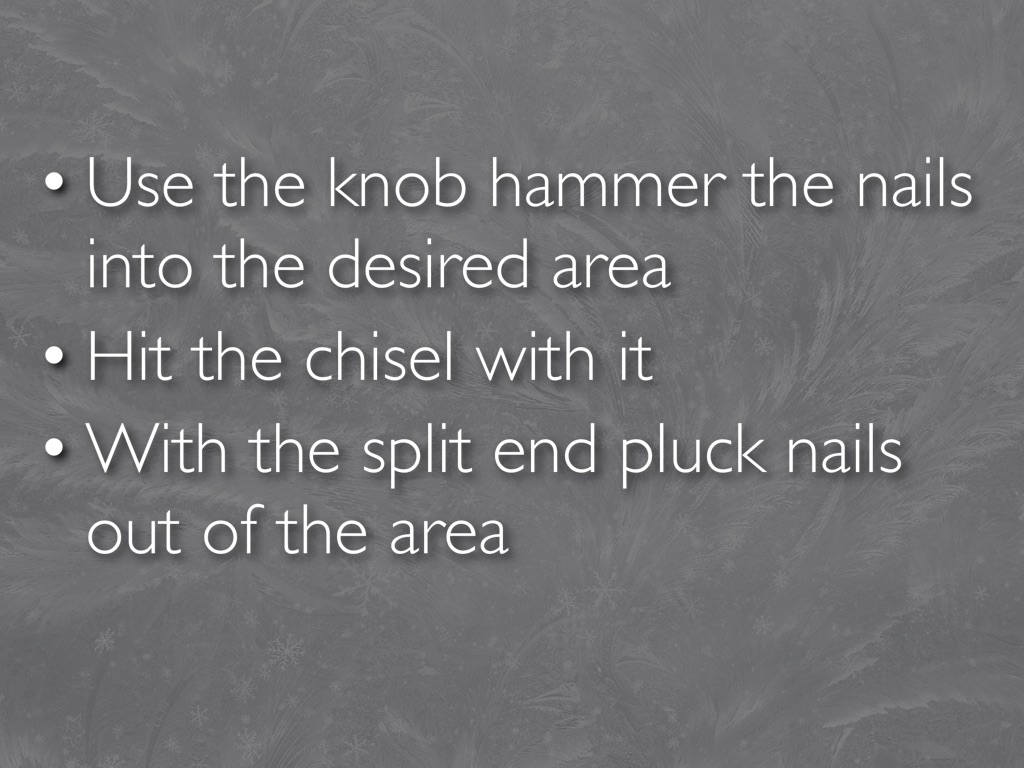 Use the knob hammer the nails into the desired area