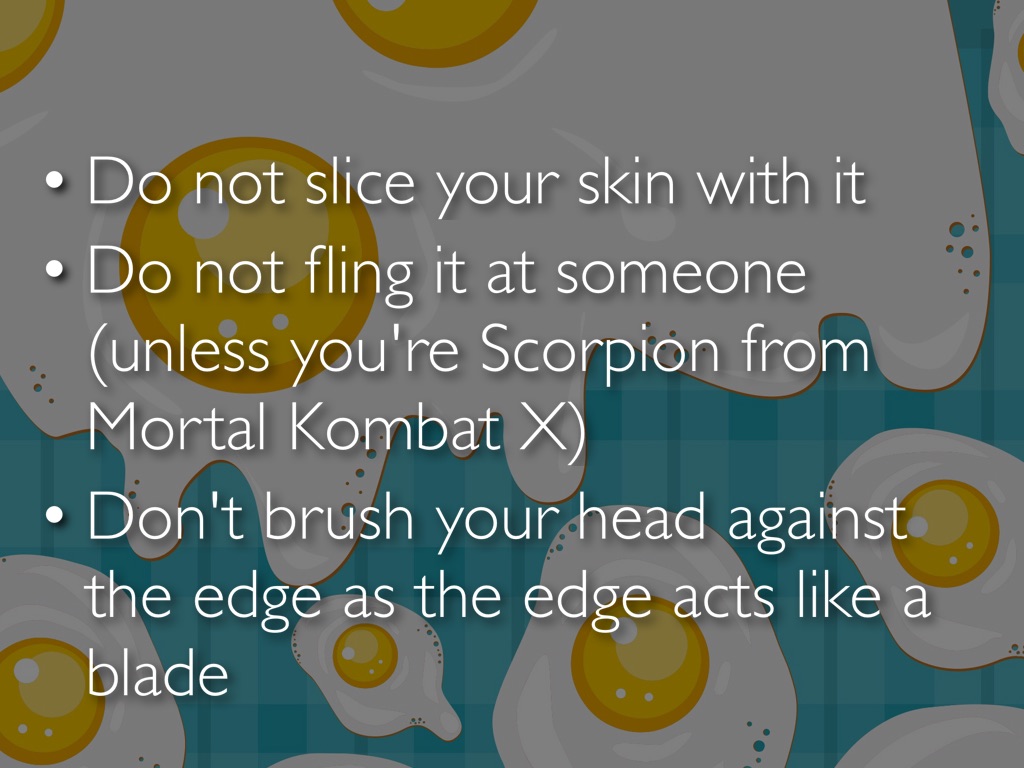Do not fling it at someone (unless you're Scorpion from Mortal Kombat X)