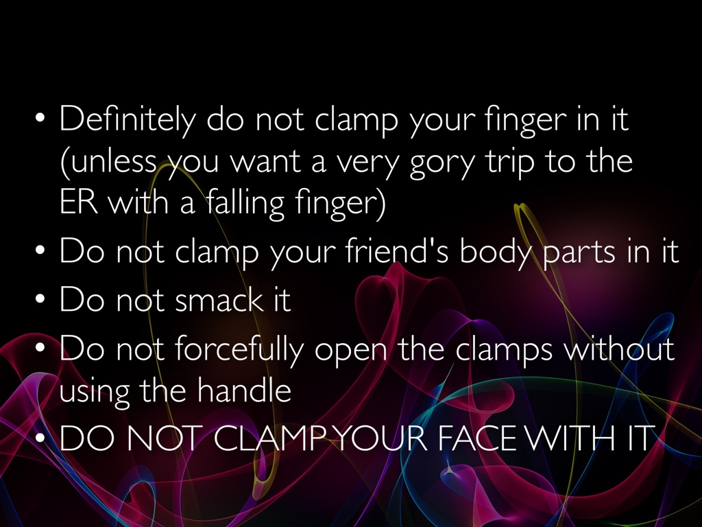 Do not clamp your friend's body parts in it